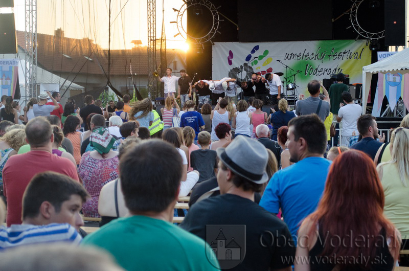 Milí čitatelia, boli ste na VI. ročníku umeleckého festivalu vo Voderadoch? Ak áno, určite mi dáte za pravdu, že sa nám podarilo usporiadať najlepší festival od čias jeho vzniku. Po predchádzajúcich ročníkoch sme sa veľa naučili i poučili, trpezlivo počúvali pozitívne, ale aj negatívne ohlasy, a takto vyzbrojení staro-novými nápadmi sme usporiadali ďalší ročník festivalu Rukami a srdcom. Festival, ktorého dramaturgia bola v tomto roku finančne oklieštená, sa vo výslednom efekte ukázala ako neobyčajne objavná. Realizačný tím od prvopočiatku pracoval na dlhodobo udržateľnom princípe podujatia, ktoré má mať svoju tvár, svoju jasnú myšlienku a poslanie, vďaka čomu nám aj v budúcnosti umožní na festival do Voderad pritiahnuť všetky vekové kategórie. Vybrali sme sa cestou nie drahých „mainstreamových“ kapiel, ale práve naopak, vkusne sme hľadali umelcov, čo svojou kvalitou prevýšia cenu, ktorú si za účinkovanie vypýtali. V prvý deň festivalu sme v novej telocvični návštevníkom sprístupnili výstavu výtvarných umelcov Jozefa Hubálka, Lucii Kollárovej a Tibora Bilčíka. Výstavu maliarskych prác lokálnych umelcov sme netradične spestrili výstavou predmetov z rokov päťdesiatych až osemdesiatych. Výstava takzvaných retro exponátov však nebola samoúčelná vďaka aktivite občianskeho združenia TRISIG, ktoré návštevníkom ponúkalo kávu uvarenú v starom retro štýle. Program na hlavnom pódiu po prvýkrát v histórii podujatia otvorili deti spolu s učiteľmi zo základnej umeleckej školy. Akordeónový súbor ZUŠ vo Voderadoch sa predstavil zmesou šansónových skladieb a známeho Uhorského tanca od Johannesa Brahmsa. Výkon žiačok umeleckej školy Veroniky Purgyovej, Niny Berglovej a Ivony Szijjártóovej bol poslucháčmi vysoko hodnotený. Naše akordeonistky si vďaka vystúpeniu na profesionálnom festivalovom pódiu mali možnosť vyskúšať dojmy profesionálnych umelcov. Ostatný program bol ladený na ľudovú nôtu vďaka dychovej hudbe Váhovanka, ktorej vystúpenie vtipne prešpikoval ľudový rozprávač strýco Lajoš. Vďaka kvalitnej dychovke, hovorenému slovu, retrokaviarni a vystúpeniu detí zo ZUŠ sa z pôvodne avizovaného predfestivalového večera stal plnohodnotný festivalový večer. Dôkazom čoho bolo aj približne 300 návštevníkov. Sobotňajší programom nabitý festivalový deň začal pozvoľna aj vďaka extrémne teplému počasiu. Na detské popoludnie a divadelné predstavenie prišlo len niekoľko desiatok rodičov s deťmi, čo nám, paradoxne, umožnilo vizuálne zlepšiť deťom zážitok z divadielka. Organizátori duchaprítomne rozhodli, že na hlavnom pódiu budú herci spolu s deťmi. Tento krok bol dobrou voľbou, vďaka čomu sme usadili deti do tieňa a zároveň sme oveľa účinnejšie zaujali ich pozornosť. Po divadelnom predstavení zazneli slávnostné fanfáry, po ktorých nasledovalo vystúpenie hudobných skupín (Slovak Tango, Explosion Trio, Polemic, Bystrík s kapelou a Smola a hrušky). V dramaturgii profesionálnych hudobných skupín si už tradične našlo svoje miesto vystúpenie speváckeho zboru Prameň pod šikovnou dirigentskou taktovkou Mgr. Heleny Cisárovej. No ale skôr, ako zazneli tóny našich vynikajúcich speváčok, všetkým nám – hosťom i organizátorom festivalu sa tradične prihovoril pán starosta JUDr. Marek Turanský, MBA. Keďže festival nie je len o kapelách na hlavnom pódiu, návštevníci mali možnosť prezrieť si prácu viacerých šikovných remeselníkov. Za zmienku určite stojí spomenúť práce pani Silvie Šimák Koštrnovej, žiaka Lukáša Fedora, ako aj stánok s keramikou mentálne postihnutých detí, ktorý sme prichystali v spolupráci s pani Gabikou Haršányovou. Festivalovým areálom zneli aj zvuky motorovej píly, ktorú obsluhoval drevorezbár Martin Kalman. Pod rukami tohto šikovného remeselníka vzniklo dielo s názvom „Janko Hraško na lyžičke“. Umeleckú rezbu nám autor vyrobil za cenu materiálu a hotové dielo venoval Materskej škole vo Voderadoch, kde bude slúžiť deťom ako lavička. Od ostatného festivalu síce uplynulo len zopár dní, ale už teraz sa nevieme dočkať príprav budúcoročného umeleckého festivalu, s ktorým verím, že nám bude pomáhať stále viac dobrovoľníkov, vďaka čomu budeme stále viac napĺňať myšlienku festivalu: “rukami a srdcom”.