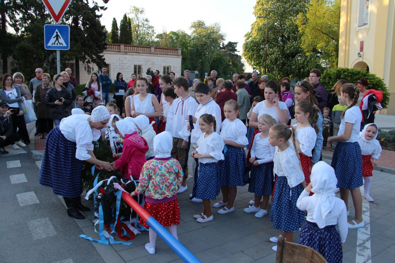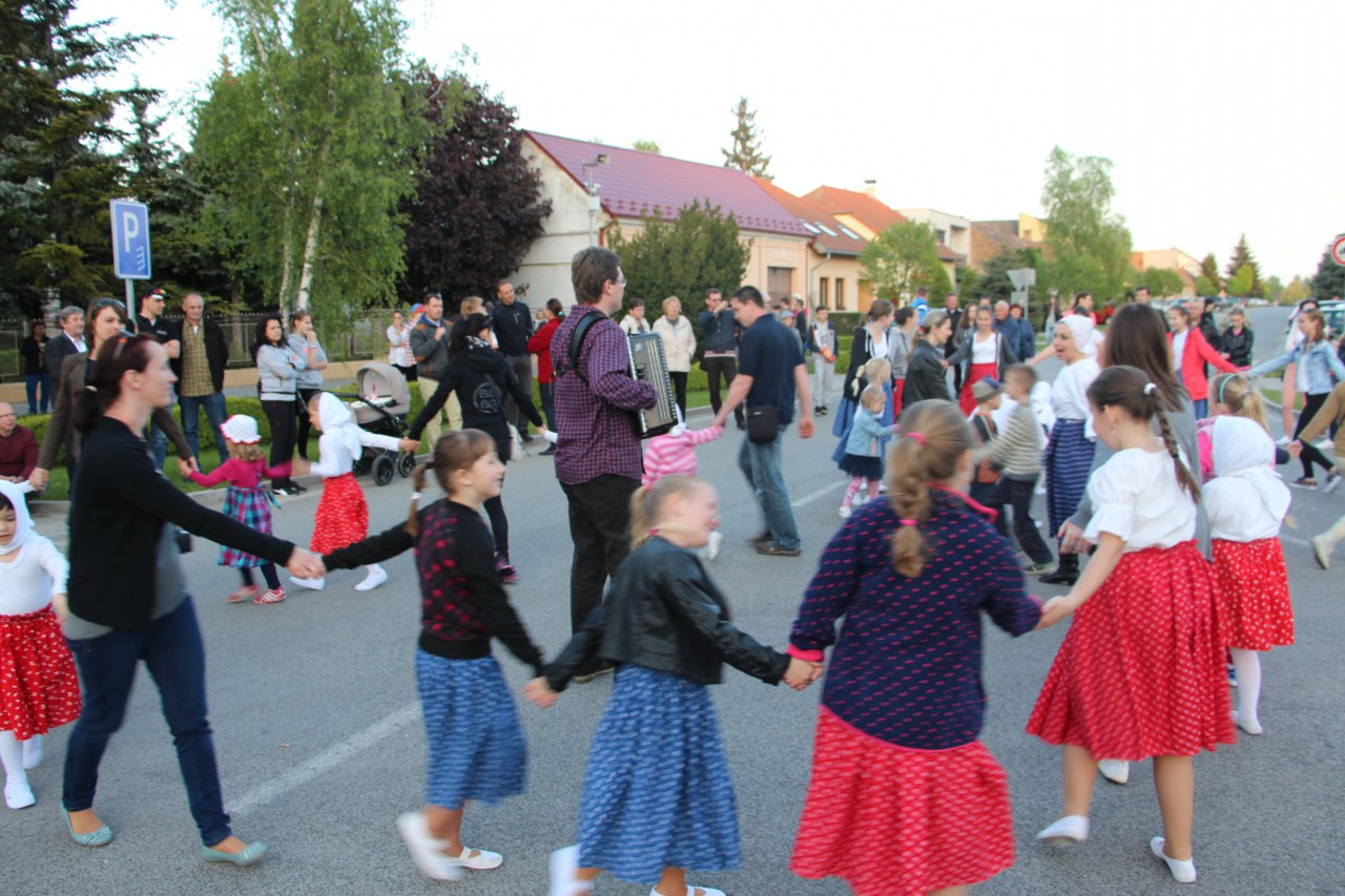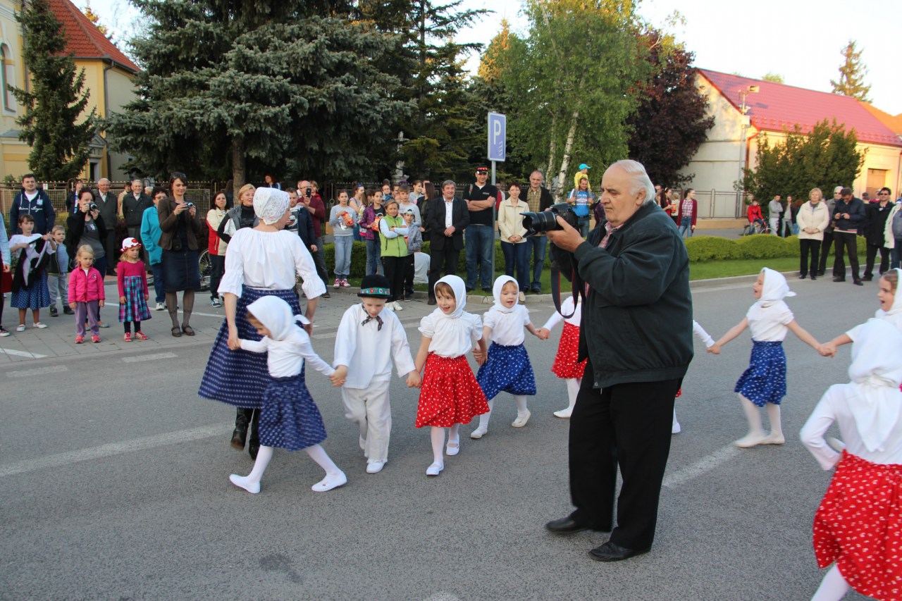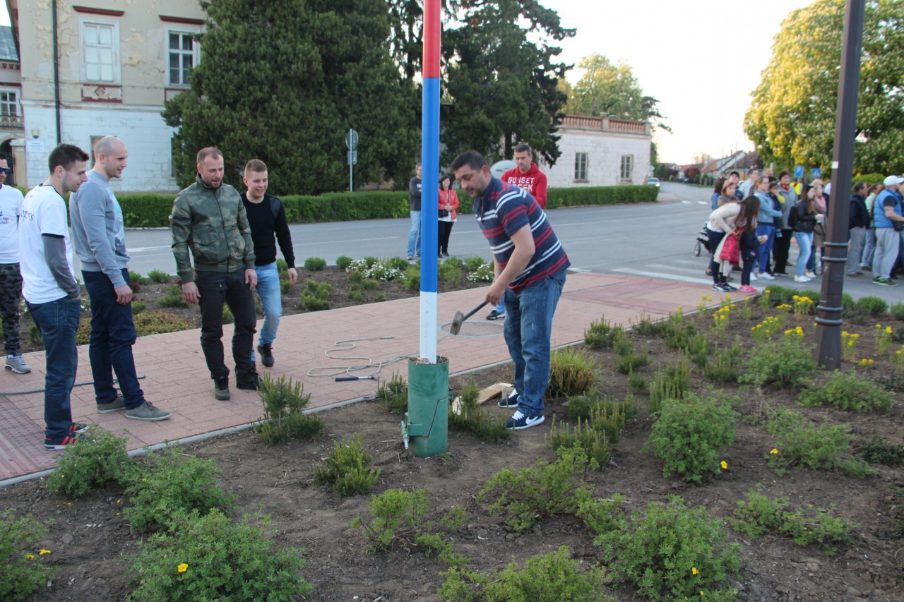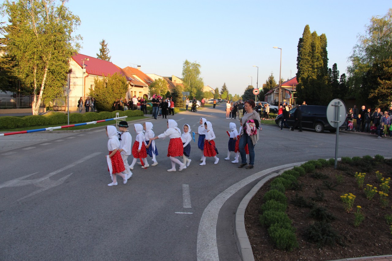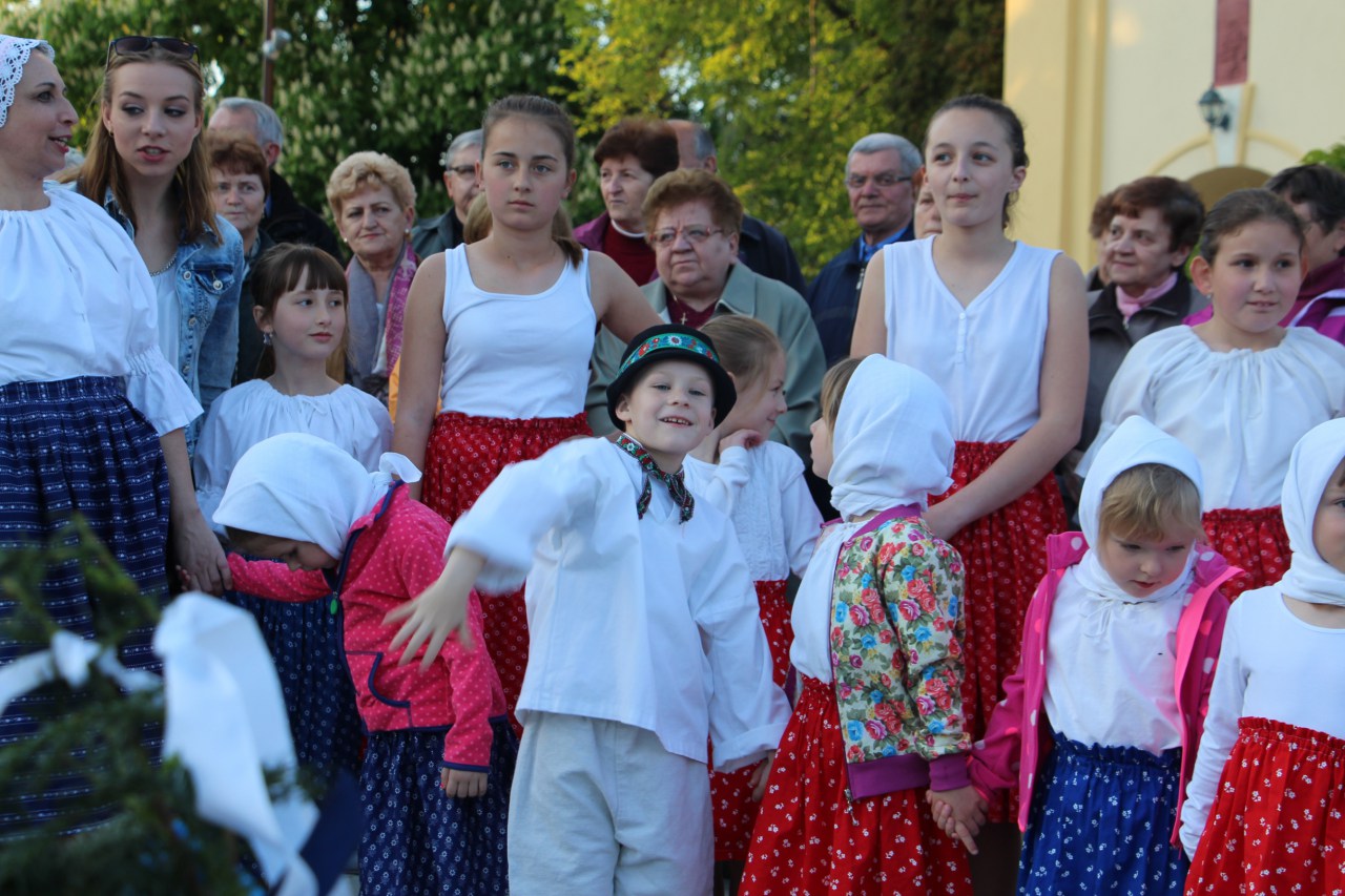 A podarilo sa ! Krásne dekorovaný Máj, ktorý stužkami dozdobili deti z folklórneho súboru z Materskej školy vo Voderadoch, pod vedením I. Táčovskej, sa za malú chvíľu nádherne týčil nad námestím. V kultúrnom programe okrem detí z materskej školy účinkovali aj žiaci z tanečného odboru ZUŠ vo Voderadoch. Za akordeónového hudobného sprievodu Mgr.art. Michala Matejčíka si spoločne s deťmi zaspievali aj speváci zo speváckeho zboru Prameň z Voderád.