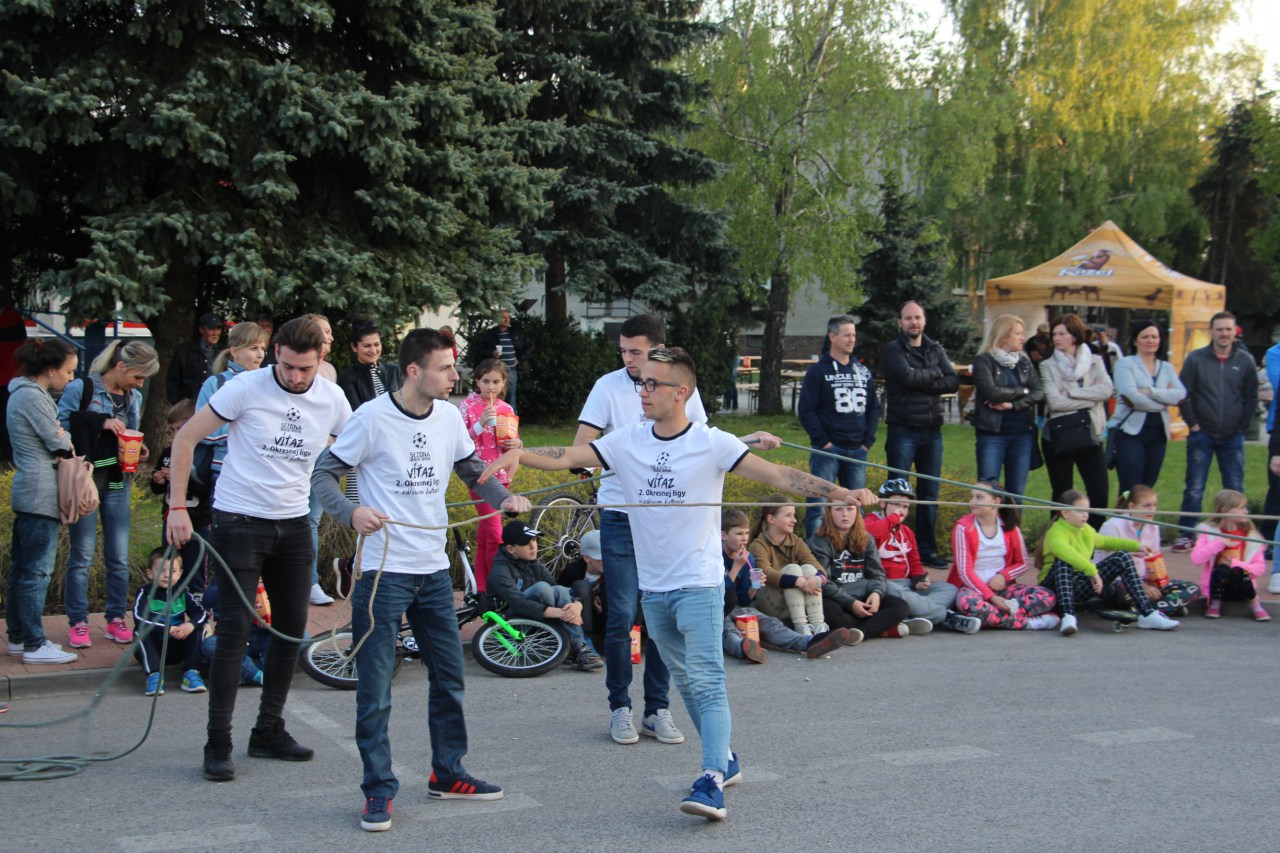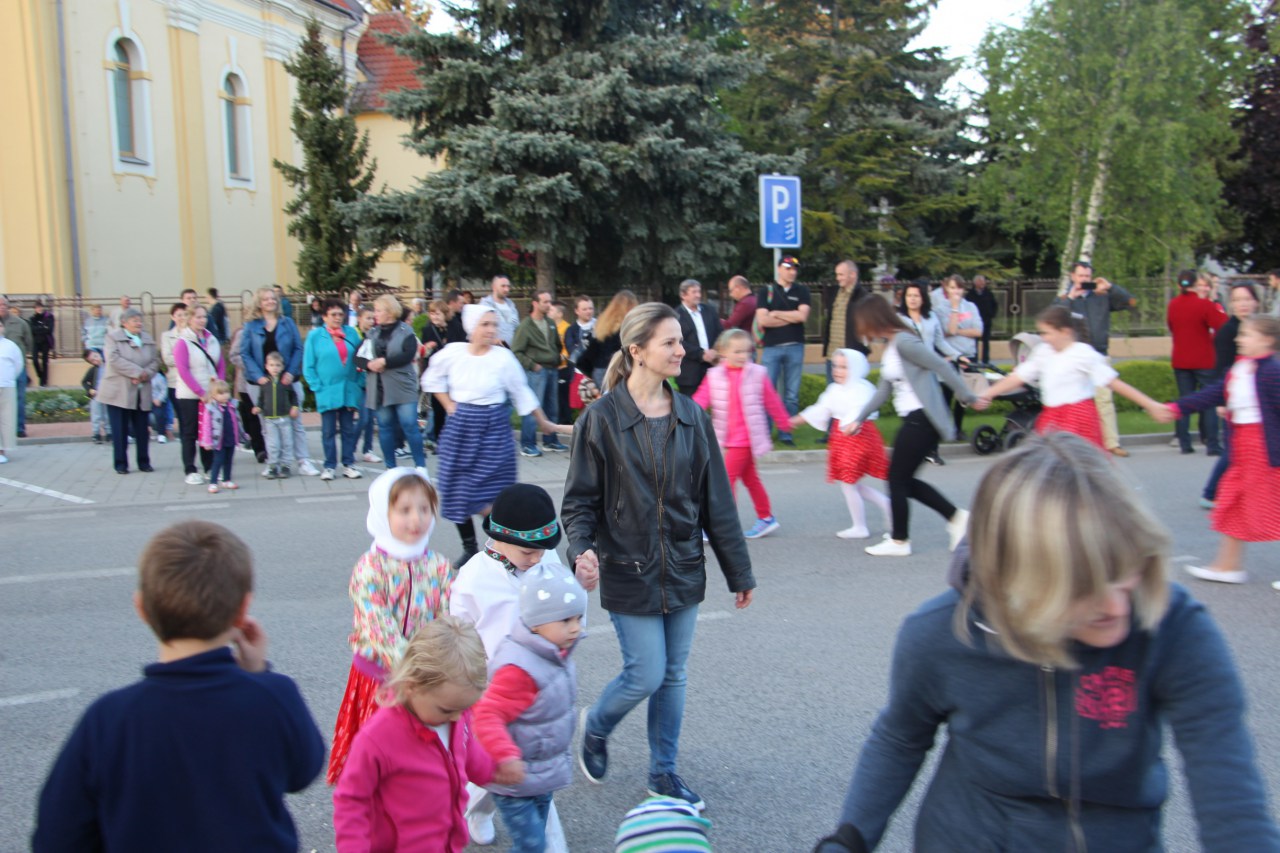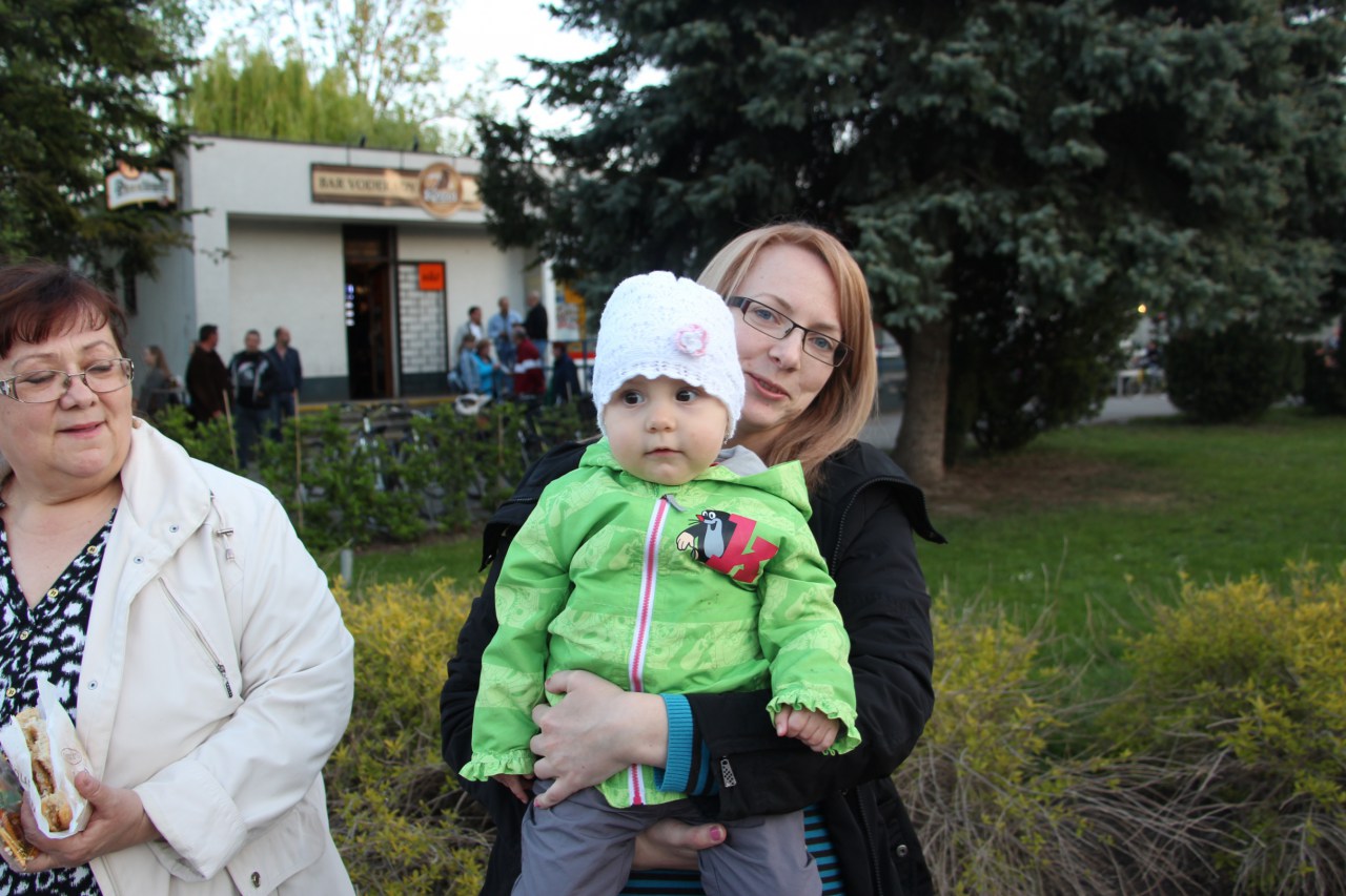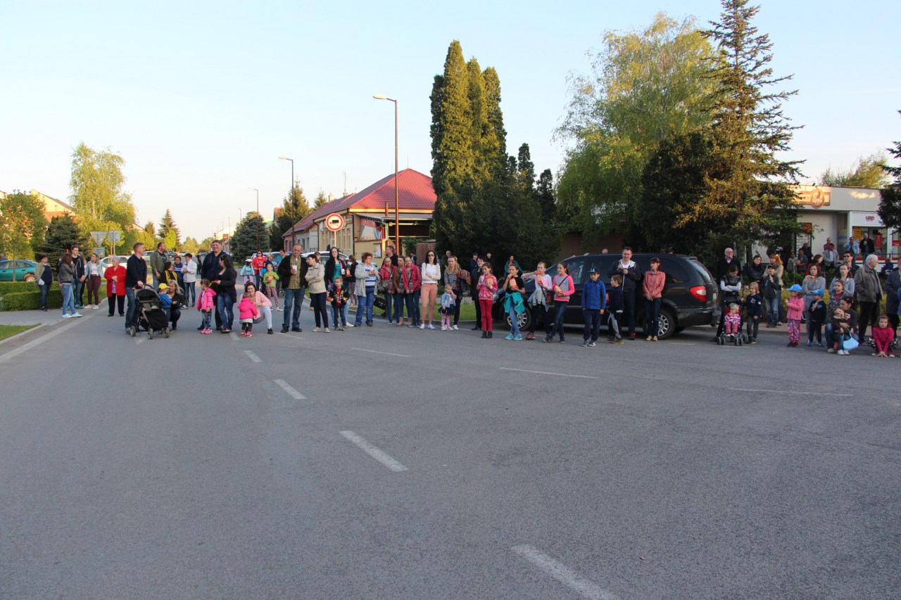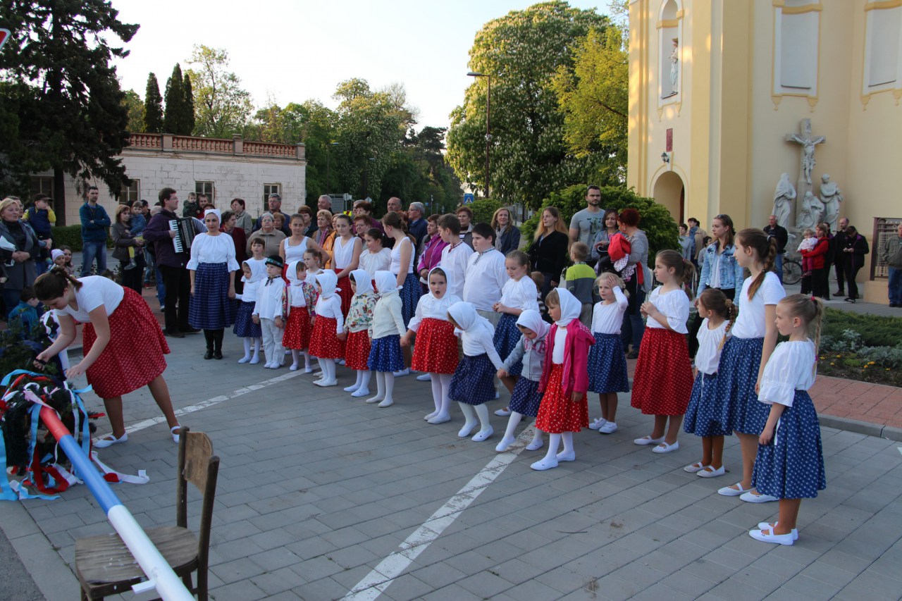 A podarilo sa ! Krásne dekorovaný Máj, ktorý stužkami dozdobili deti z folklórneho súboru z Materskej školy vo Voderadoch, pod vedením I. Táčovskej, sa za malú chvíľu nádherne týčil nad námestím. V kultúrnom programe okrem detí z materskej školy účinkovali aj žiaci z tanečného odboru ZUŠ vo Voderadoch. Za akordeónového hudobného sprievodu Mgr.art. Michala Matejčíka si spoločne s deťmi zaspievali aj speváci zo speváckeho zboru Prameň z Voderád.