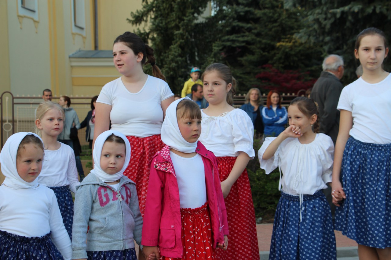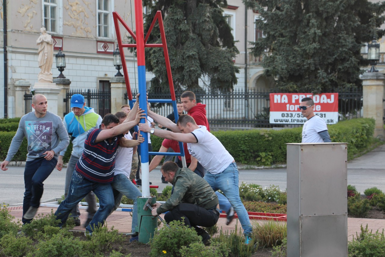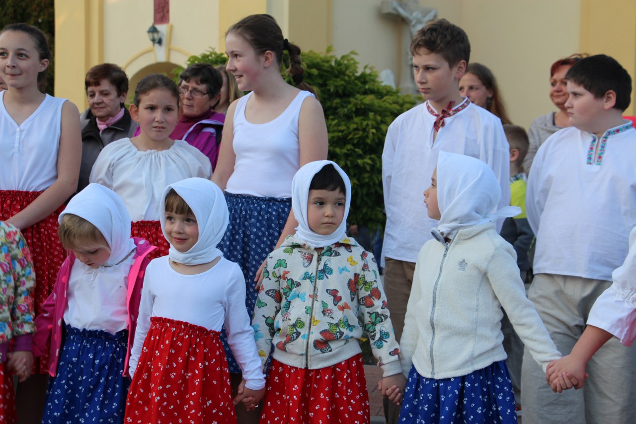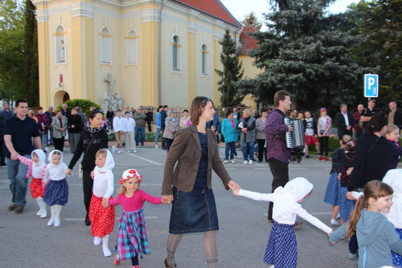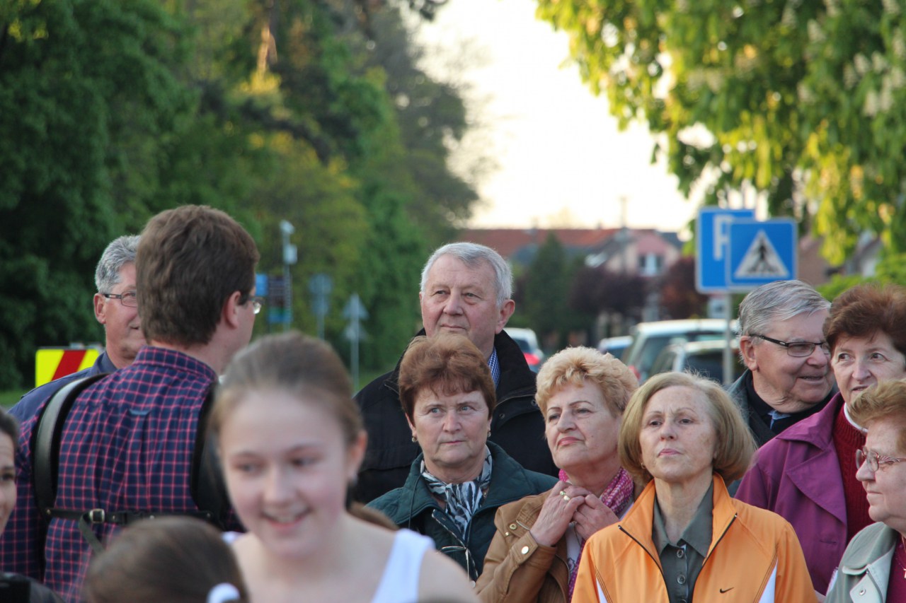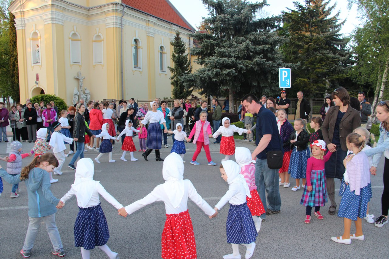 A podarilo sa ! Krásne dekorovaný Máj, ktorý stužkami dozdobili deti z folklórneho súboru z Materskej školy vo Voderadoch, pod vedením I. Táčovskej, sa za malú chvíľu nádherne týčil nad námestím. V kultúrnom programe okrem detí z materskej školy účinkovali aj žiaci z tanečného odboru ZUŠ vo Voderadoch. Za akordeónového hudobného sprievodu Mgr.art. Michala Matejčíka si spoločne s deťmi zaspievali aj speváci zo speváckeho zboru Prameň z Voderád.