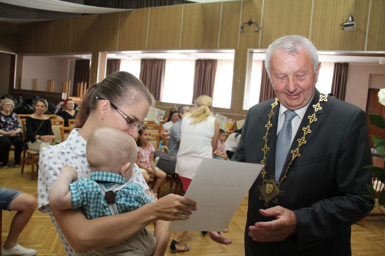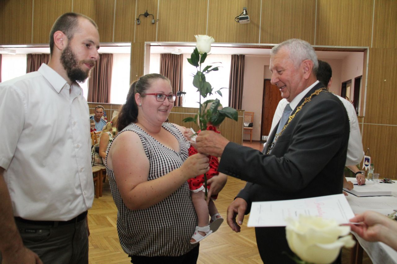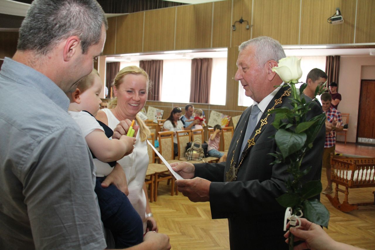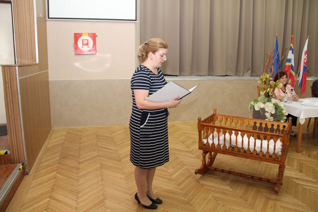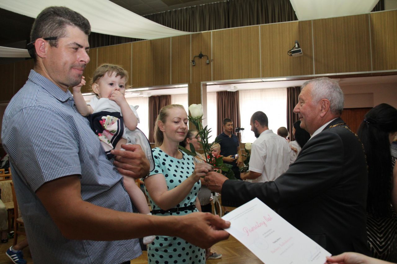 Následne starosta obce odovzdal rodičom pamätný list, mamičkám bielu ružu a finančnú hotovosť 200,-- Eur. ( Pozn. : Podmienky poskytnutia finančného príspevku novonarodeným deťom upravuje VZN obce Voderady č. 6/2016. )