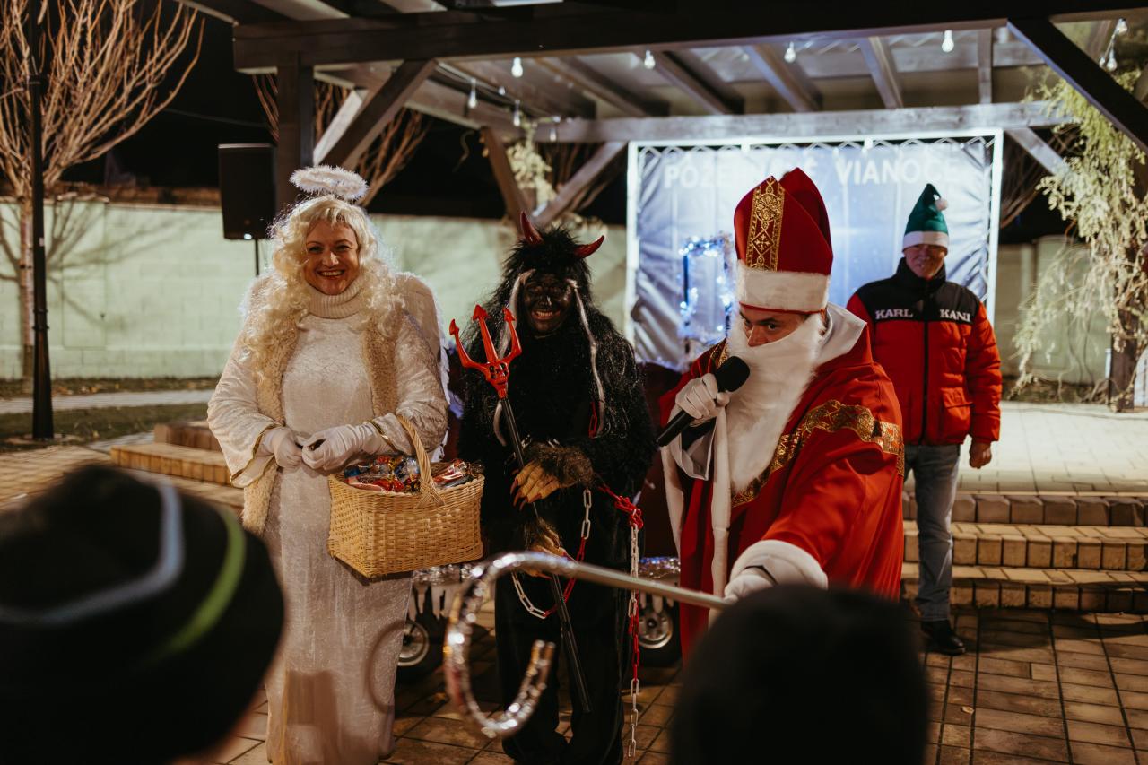 Najúprimnejšiu radosť z blížiacich sa Vianoc najviac vidno na rozžiarených očkách našich najmenších. Pár dní pred Vianocami v krásnom tajomne očakávajú aj príchod Mikuláša. A veru, sa potešili, keď Mikuláš so svojimi pomocníkmi Anjelom a Čertíkom Bertíkom neobišiel ani Voderady. Privítali sme ich 5.12. na Kultúrnej zóne, kde Mikuláš spolu s deťmi rozsvietil vianočný stromček a svetelné dekorácie. Deti mali pripravené krásne pesničky, básničky, za ktoré dostali od Mikuláša a Anjela sladké prekvapenie. Mikuláš sa nestačil čudovať, koľko detí mu chcelo zaspievať či zarecitovať. Čertík sa prizeral a presvedčil sa, že vo Voderadoch bývajú dobré deti a žiadne z nich nemusel zbaliť do vreca. Ešte v úvode stretnutia si deti vypočuli krátky príbeh o Mikuláškovi, ktorý pomáha chudobným a robí dobré skutky. Nielen v čase Vianoc myslime na tých, ktorí našu pomoc potrebujú. Buďme celý rok Mikuláškovia...Krásne sviatky všetkým !