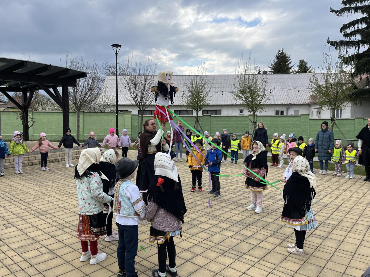 Slamená figurína na palici oblečená v ženských šatách, ozdobená stužkami, bola tradične odnesená za dedinu a hodená do potoka. Deti pri tom spievali veselé piesne a recitovali ľudové povedačky. Nechýbal ani kultúrny program, ktorý malí škôlkari s nadšením predviedli na Kultúrnej zóne, kde si získali potlesk i obdiv prítomných.