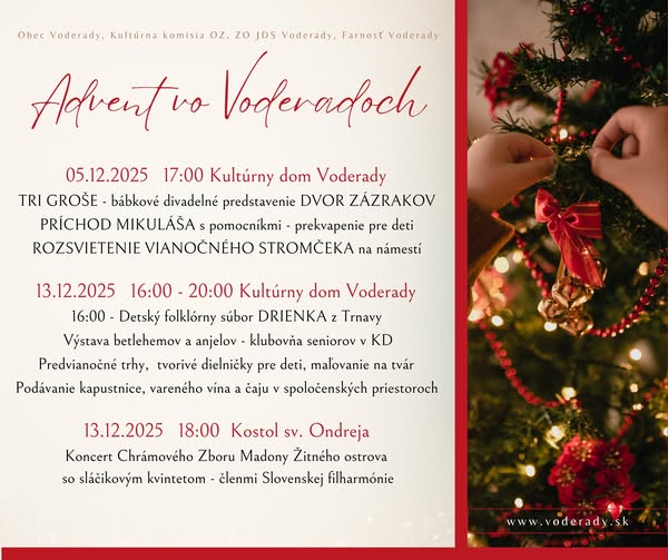 V spoločenských priestoroch sa bude podávať tradičná kapustnica, varené víno a čaj od Obce Voderady.
