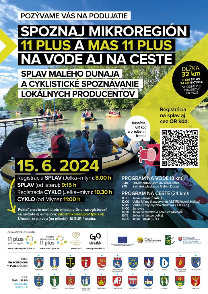 Mikroregión 11 plus a MAS 11 plus Vás pozývajú na podujatie, ktoré sa uskutoční dňa 15.06.2024 na vode aj na ceste: SPLAV MALÉHO DUNAJA A CYKLISTICKÉ SPOZNÁVANIE LOKÁLNYCH PRODUCENTOV.