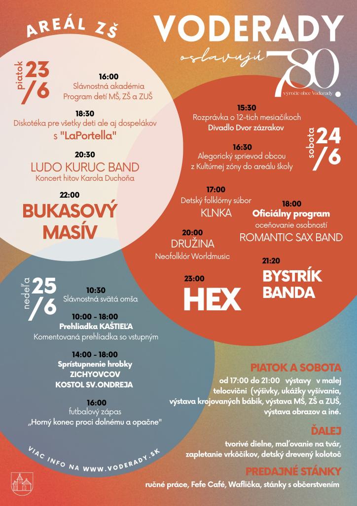 Všetky potrebné a detailné informácie o jednotlivých aktivitách nájdete na stránkach mimoriadneho vydania „Voderadčana“, aby ste si vedeli vybrať z pestrej ponuky, ale najmä, aby ste nič dôležité nepremeškali. Ponuka je naozaj široká, som presvedčená, že je si z čoho vyberať, každý si príde na svoje...